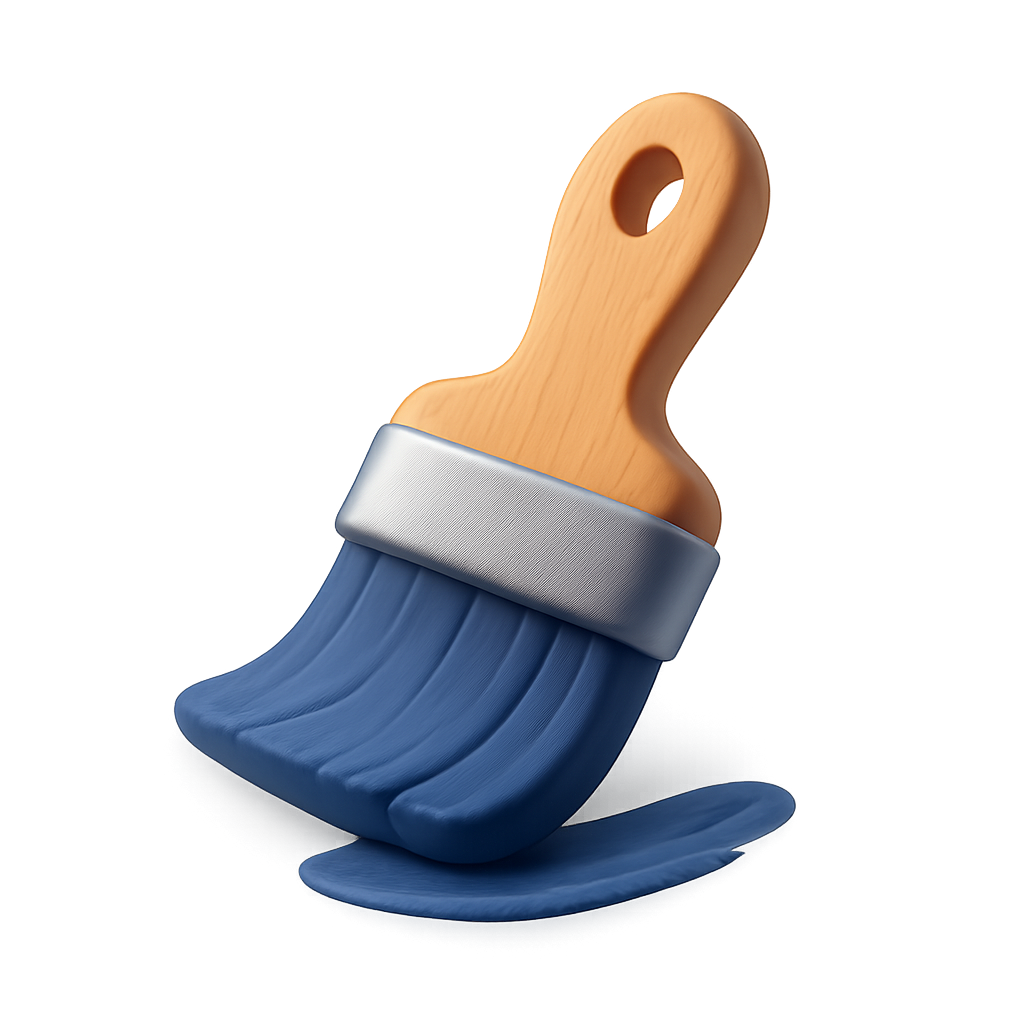 /Collection: /by davooda/Type: PNG/A vibrant 3D icon of a paintbrush with a wooden handle and blue bristles, showcasing a three-quarter view. The design features a sleek metallic band and a smooth, glossy finish, emphasizing depth and volume.