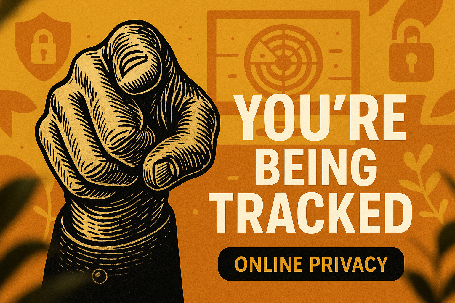 /Collection: /by davooda/Type: PNG/A striking graphic emphasizing the importance of online privacy, featuring a bold illustration of a pointing hand. The warm color palette and overlay elements convey a sense of urgency, making it suitable for educational content or awareness campaigns.