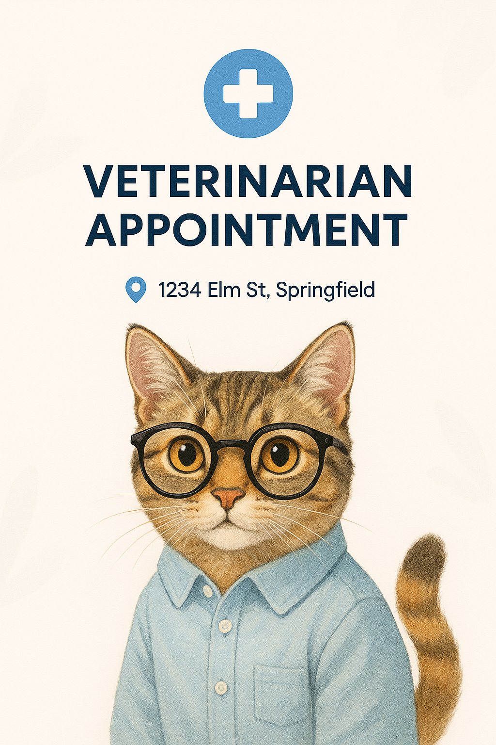 Veterinary Appointment Reminder with Cute Cat Illustration