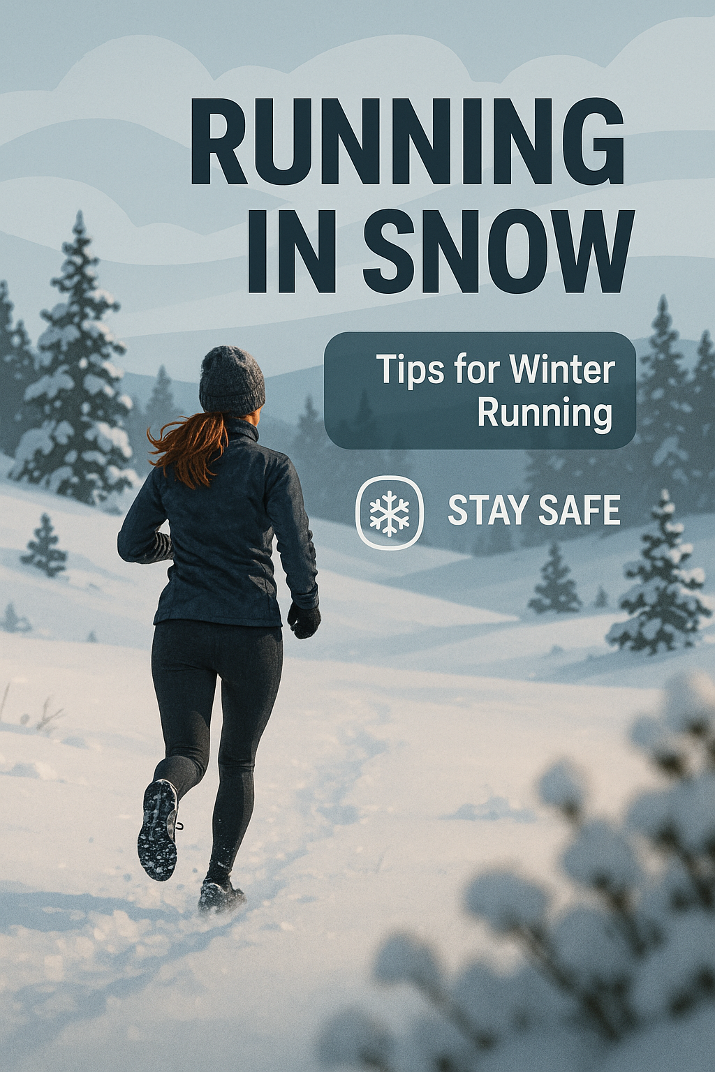 /Collection: /by davooda/Type: PNG/Inspirational social media post featuring a runner in snowy terrain, emphasizing safety tips for winter running. The design combines natural scenery with practical advice.