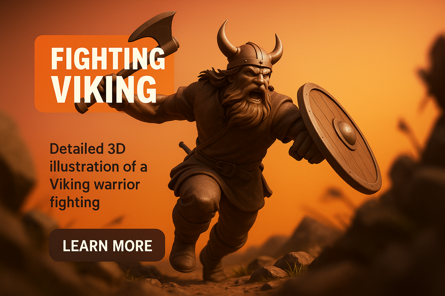 Dynamic 3D Illustration of a Viking Warrior in Battle