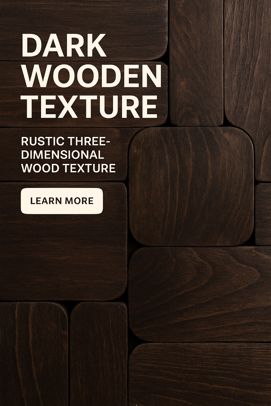 /Collection: /by davooda/Type: PNG/A dark wooden texture background featuring geometric blocks with rounded corners. Bold typography presents a headline, subtitle, and a call-to-action button, creating a modern and professional look.