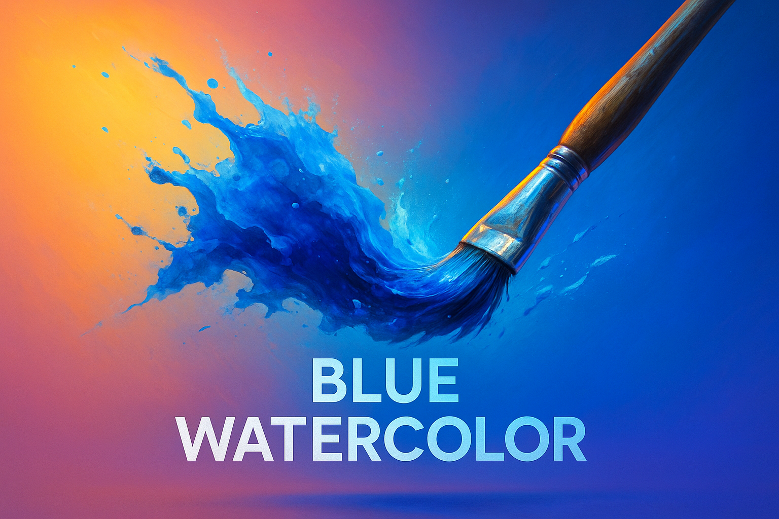 This digital artwork features a paintbrush creating a splash of blue watercolor against a gradient background. It's ideal for art-related promotions or creative projects.
