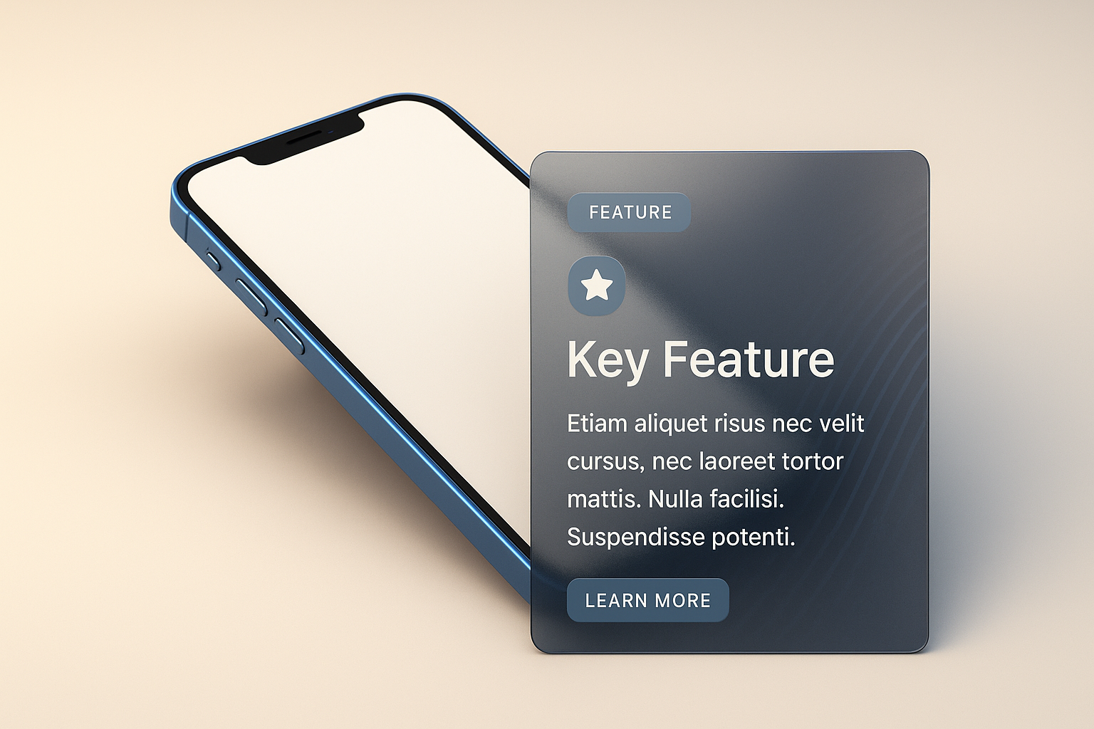 3D Blue Phone Design with Responsive Feature Card