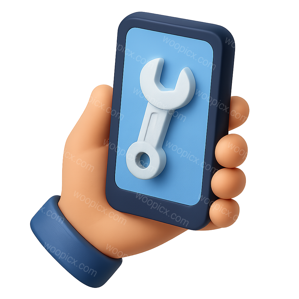 3D Icon of Phone with Wrench in Hand