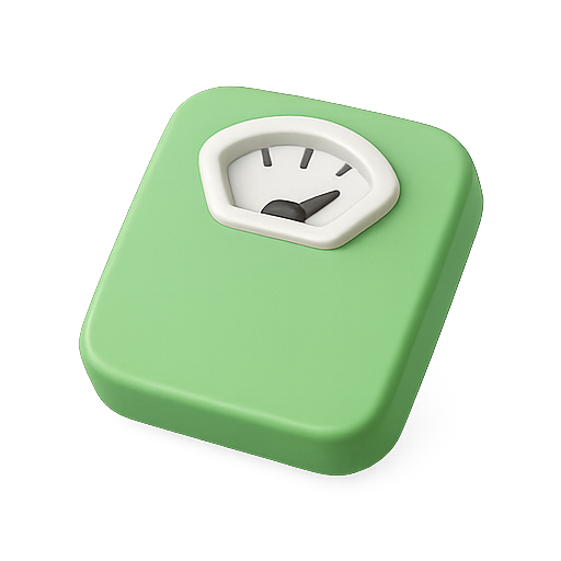 A minimalist 3D illustration of a green scale featuring a gauge, ideal for applications related to health, fitness, and measurement. The design is simple yet modern, appealing to a broad audience.