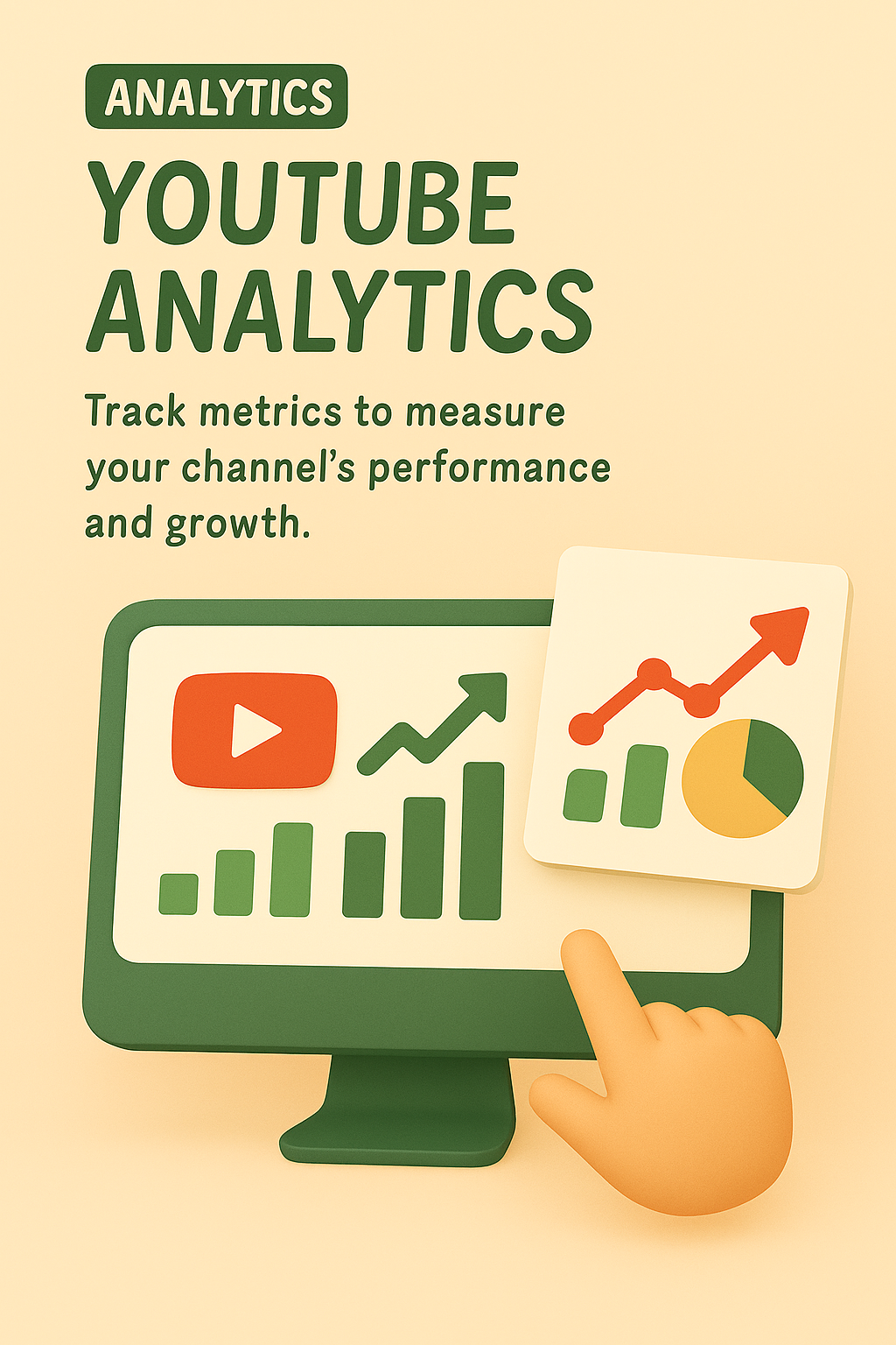 Illustrative graphic showcasing YouTube analytics with a computer screen displaying performance metrics. Ideal for digital marketing and content creation.