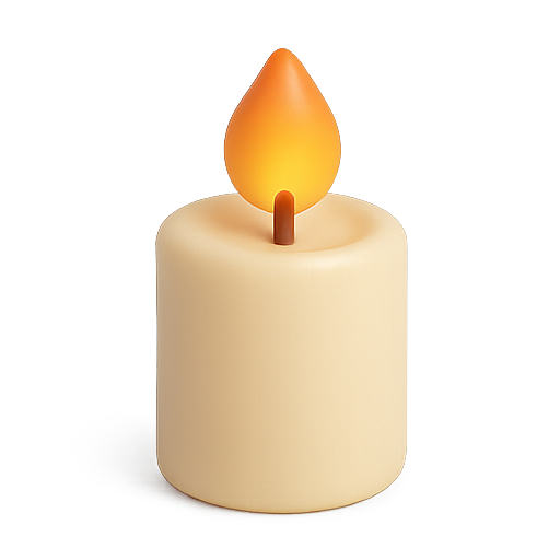 A visually appealing digital illustration of a candle featuring a warm, flickering flame. Ideal for use in web design, apps, or holiday-themed graphics.