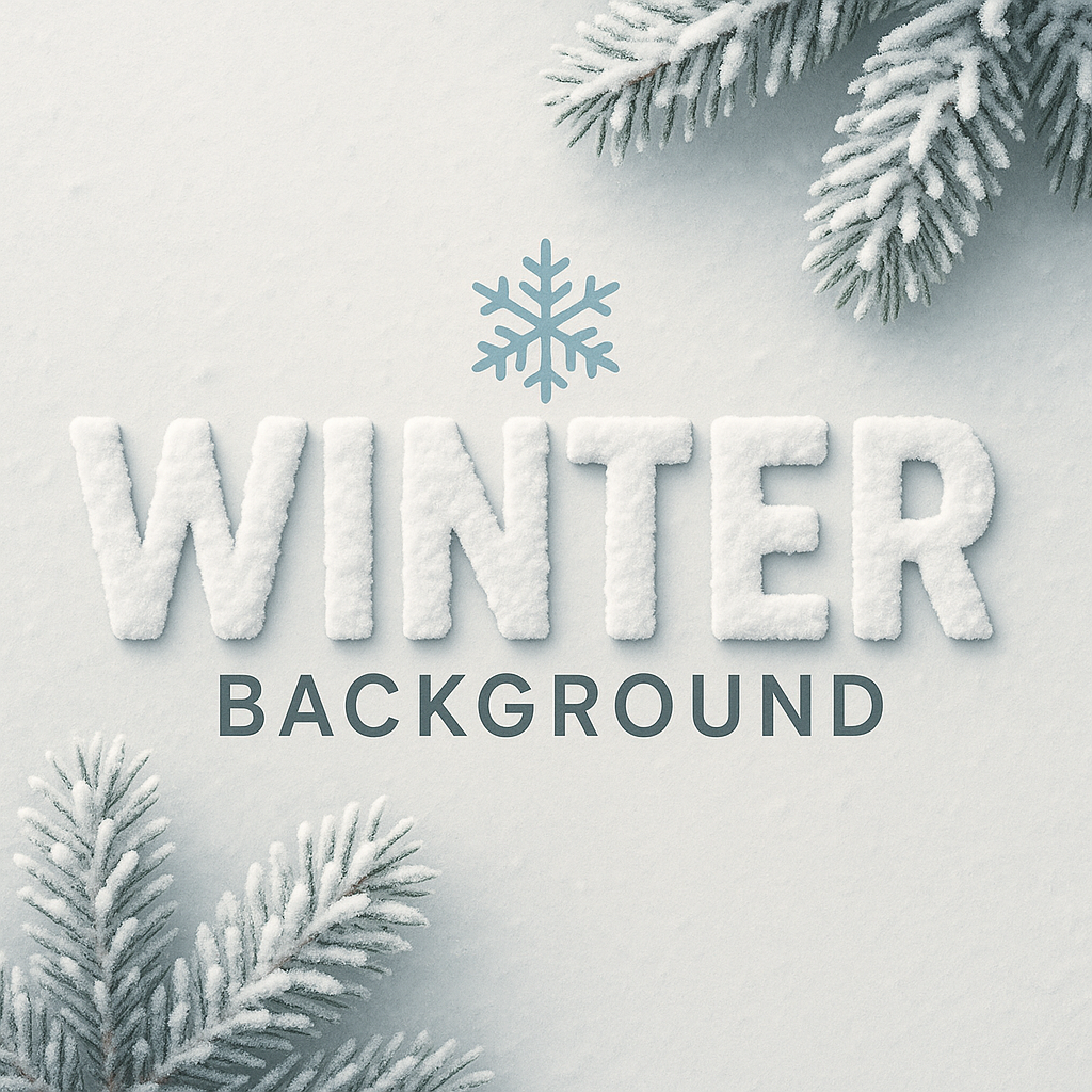 Stylized winter background graphic featuring textured snowy lettering and pine branches, ideal for seasonal promotions and holiday-themed content.
