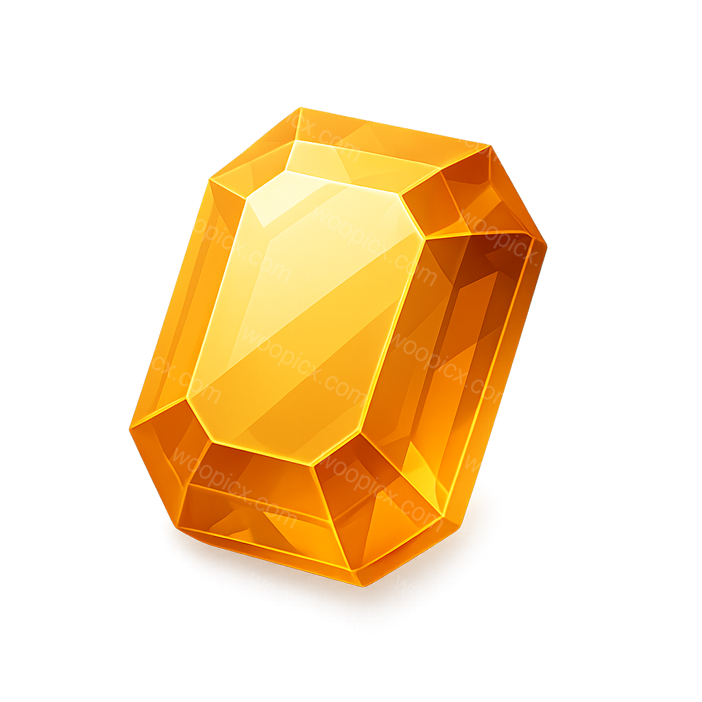 A visually striking 3D representation of a topaz yellow gem, showcasing a three-quarter view with a transparent background. The icon emphasizes a volumetric, isometric design with glossy facets.