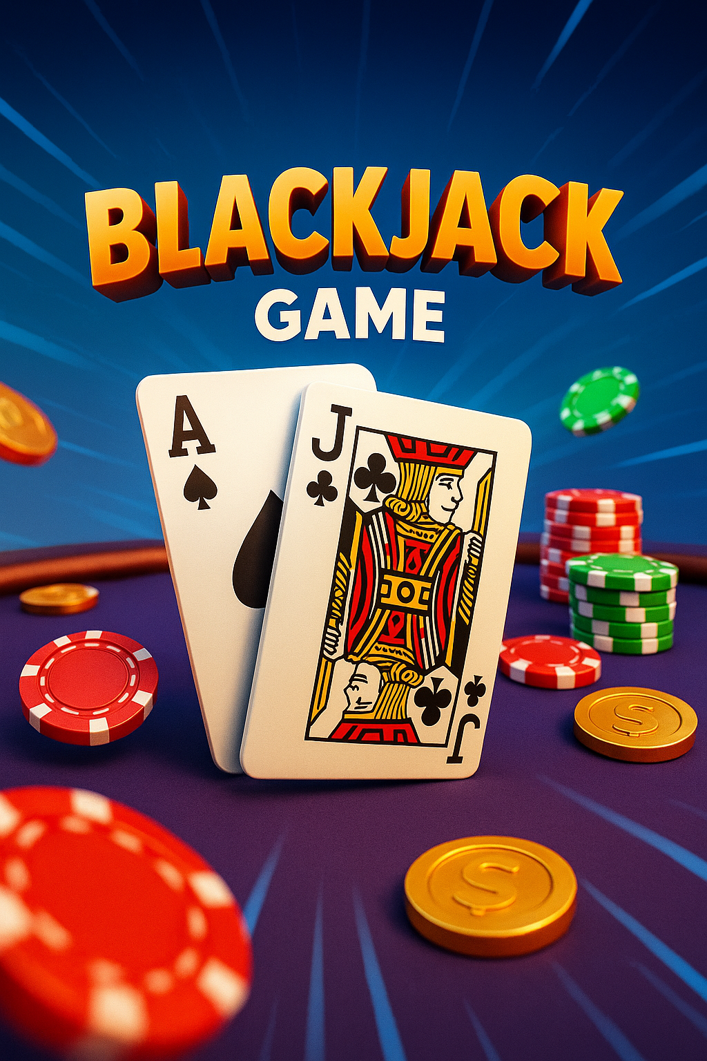 A vibrant and dynamic illustration of a blackjack table featuring playing cards and colorful poker chips. The background radiates with energy, enhancing the game's excitement.