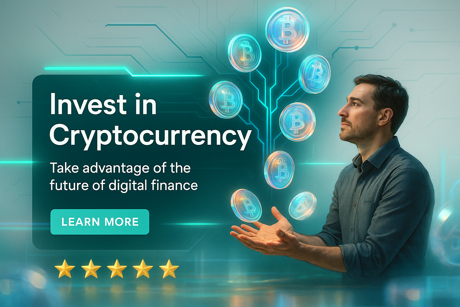 Cryptocurrency Investment Promotional Graphic with Modern Design