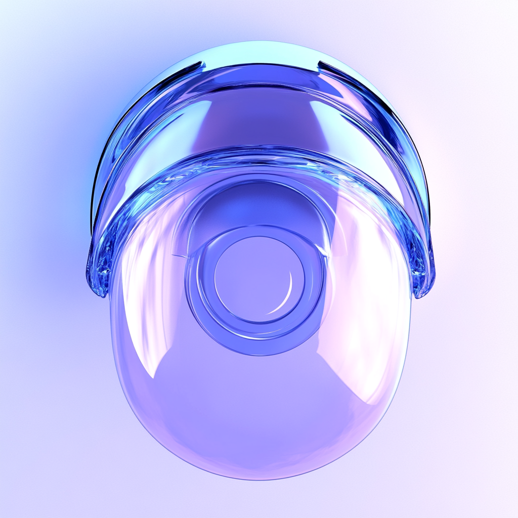 A sleek 3D rendering of a transparent camera design featuring a modern aesthetic. Ideal for tech product marketing or digital design projects.