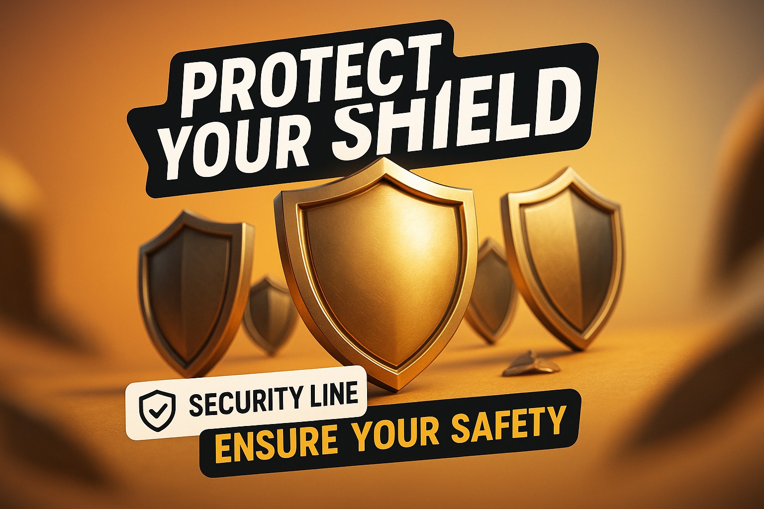 Dynamic 3D graphic featuring shields to promote security awareness. The bold typography and vibrant colors are designed for digital marketing and social media use.