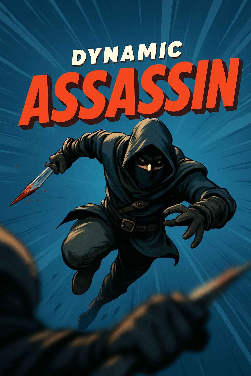 A dynamic illustration of an assassin in motion, showcasing bold typography. The character is portrayed with a weapon, set against a gradient background that enhances the sense of urgency.