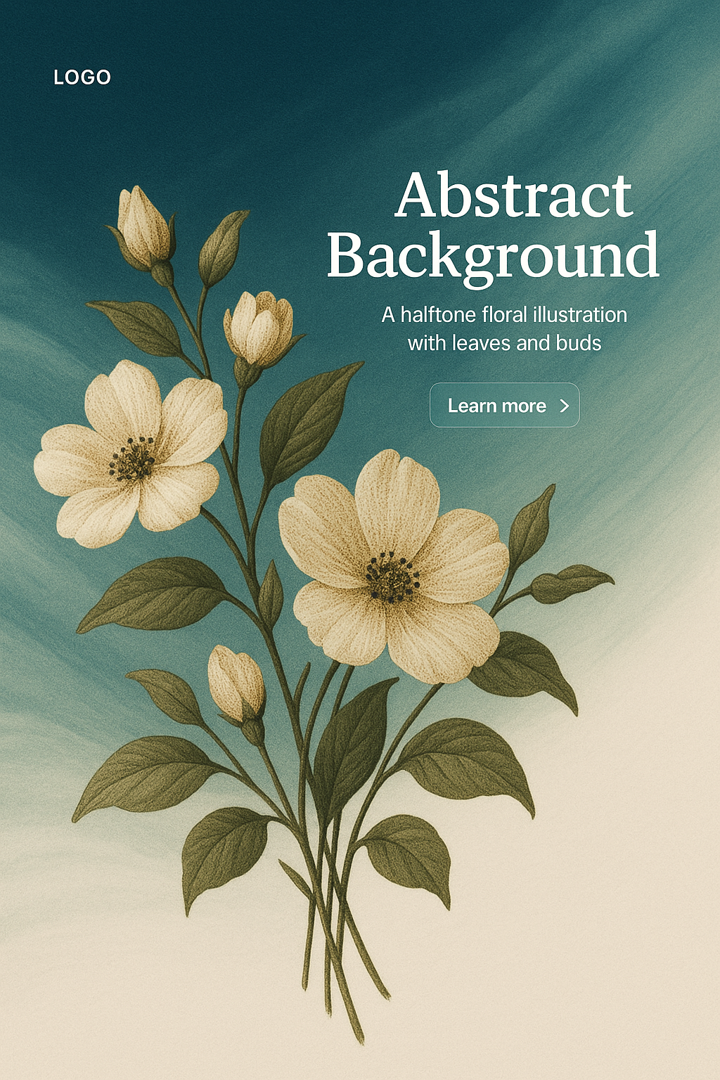 /Collection: /by davooda/Type: PNG/An elegant floral illustration featuring halftone flowers and buds. The design combines a two-color gradient background and realistic botanical elements, suitable for greeting cards.