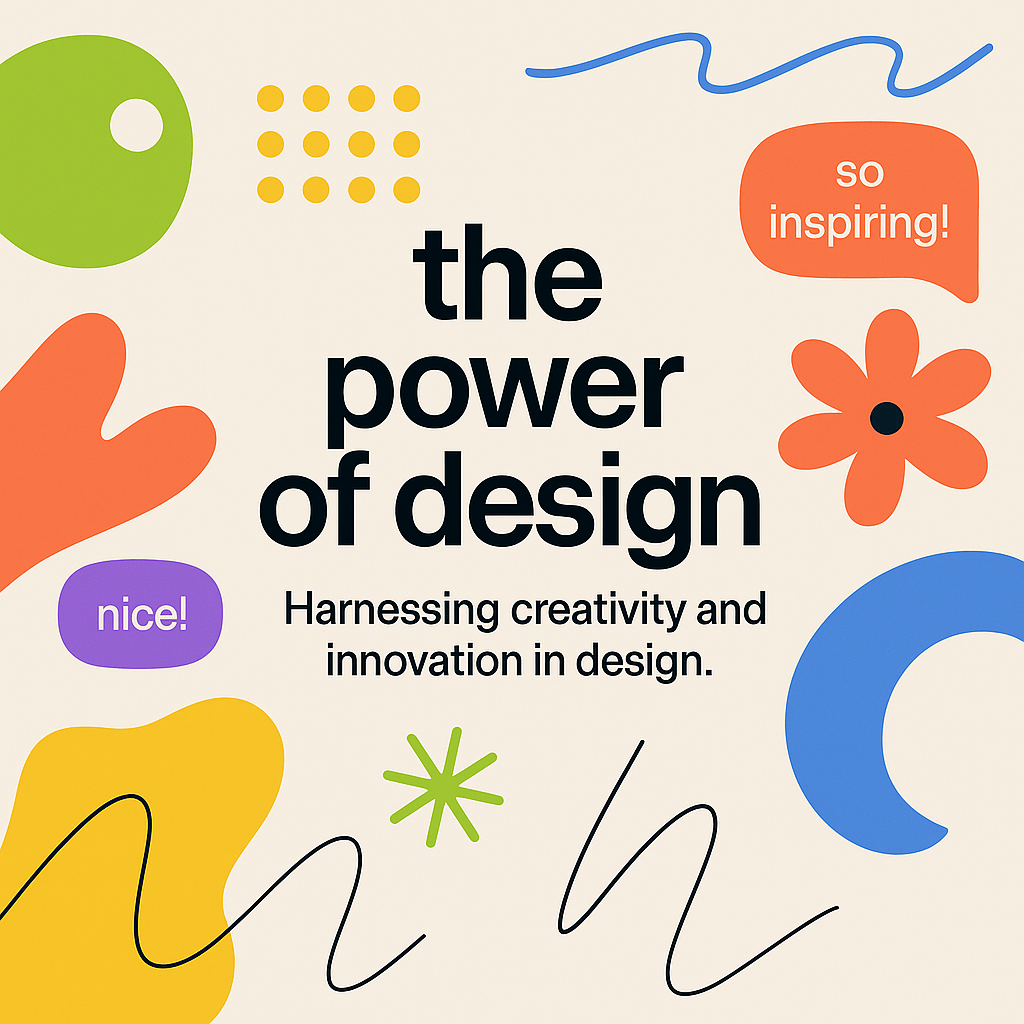 /Collection: /by davooda/Type: PNG/Vibrant graphic poster showcasing the theme of design creativity, featuring playful shapes and colors. Ideal for design events or social media promotion.