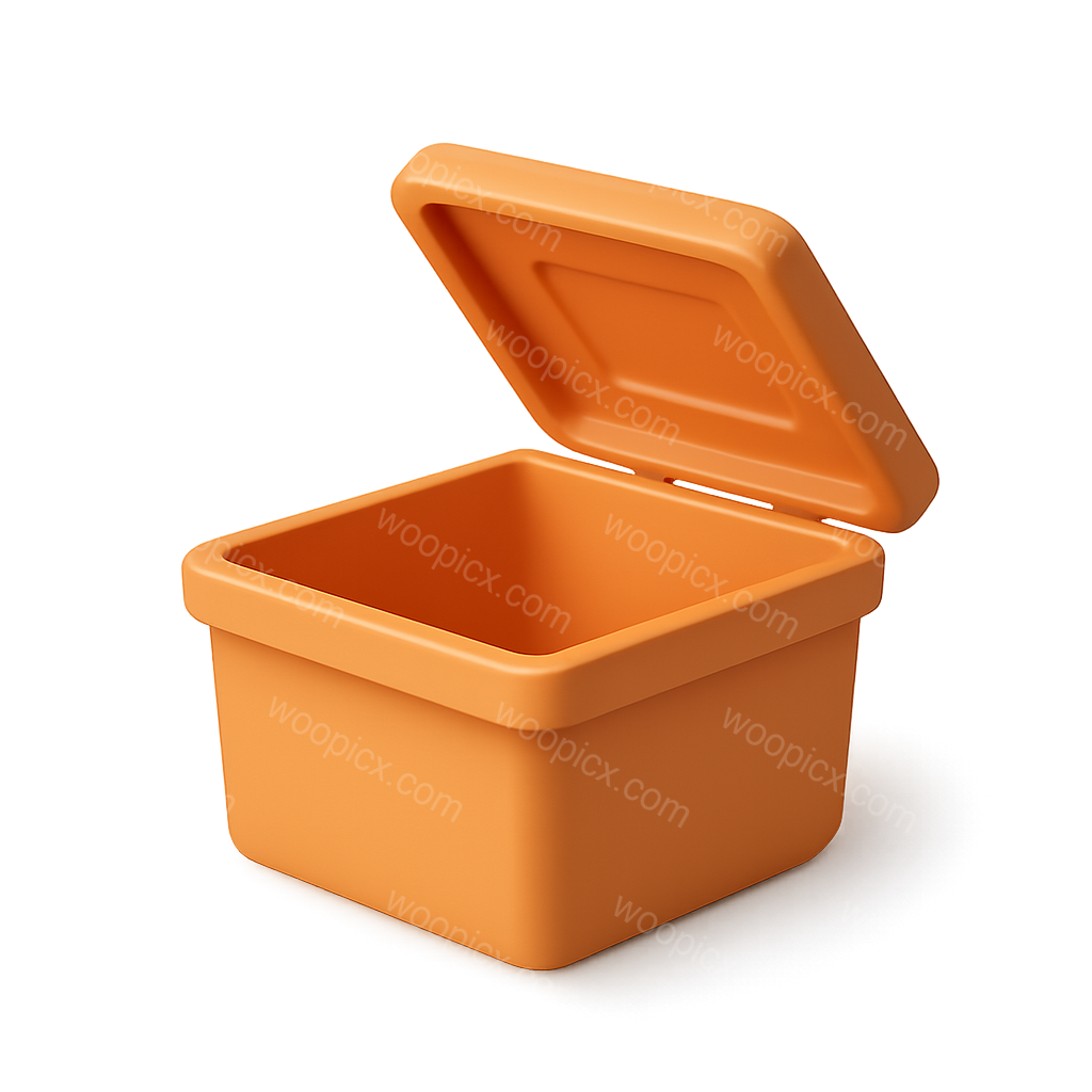 A 3D illustration of an open container with a lid, showcasing a vibrant orange color. The container is viewed from a three-quarter angle, enhancing its volumetric effect.