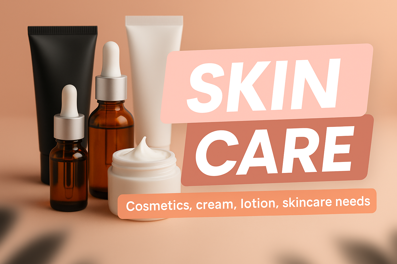 Elegant Skincare Promotional Graphic Featuring Product Display