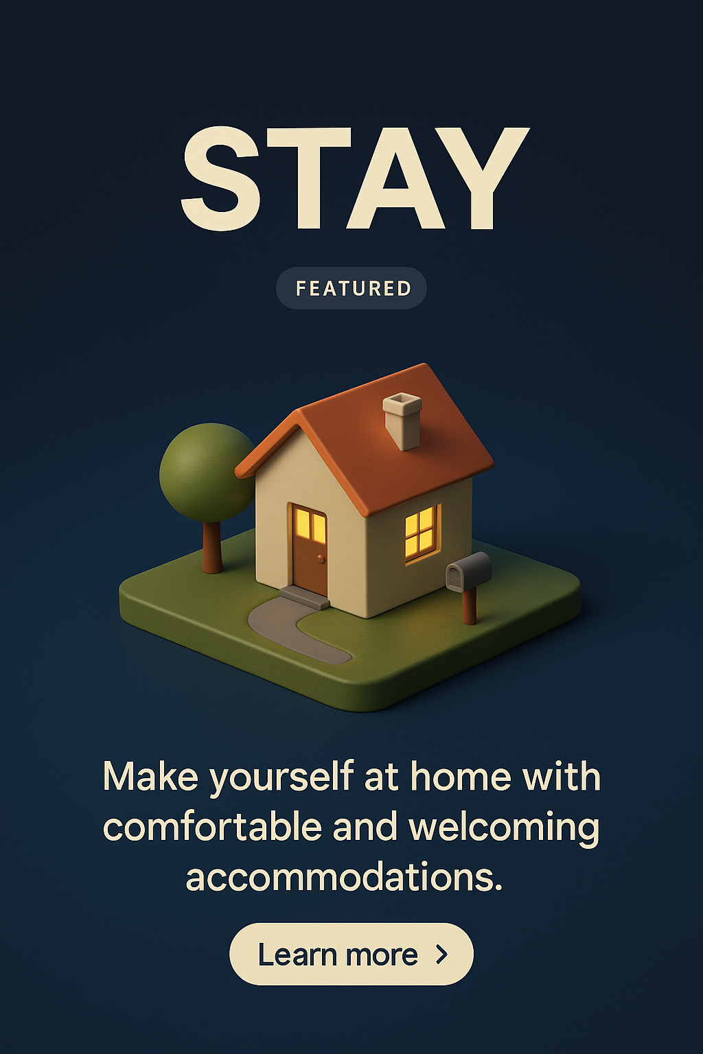A charming 3D illustration of a small house set against a dark gradient background. The scene features a tree and a pathway, creating a cozy atmosphere with inviting text.