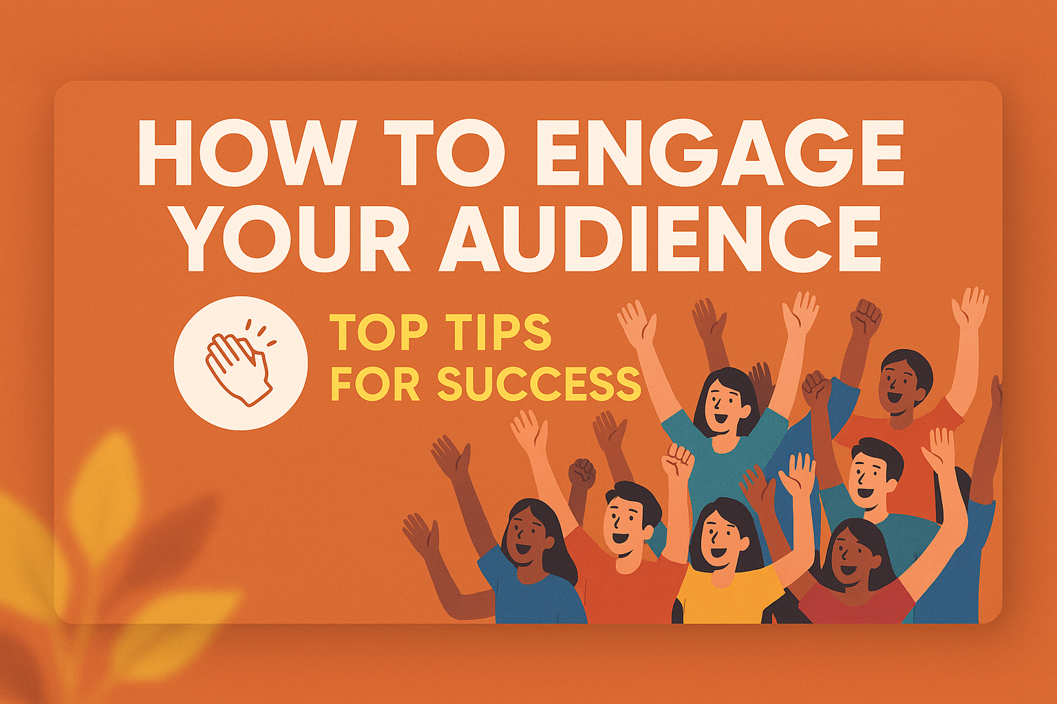 Vibrant social media graphic featuring tips for engaging an audience, designed with cheerful illustrations and a warm color palette, ideal for marketing and communication.