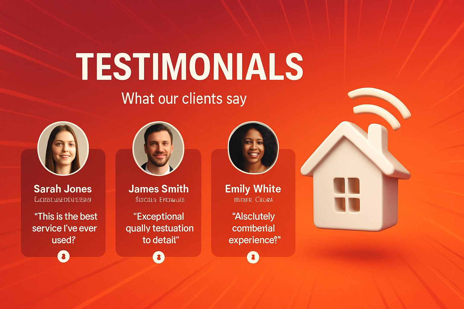/Collection: /by davooda/Type: PNG/A vibrant testimonials section featuring three cards with client images, names, and quotes. The background exhibits dynamic lines radiating outward, enhancing the visual appeal.