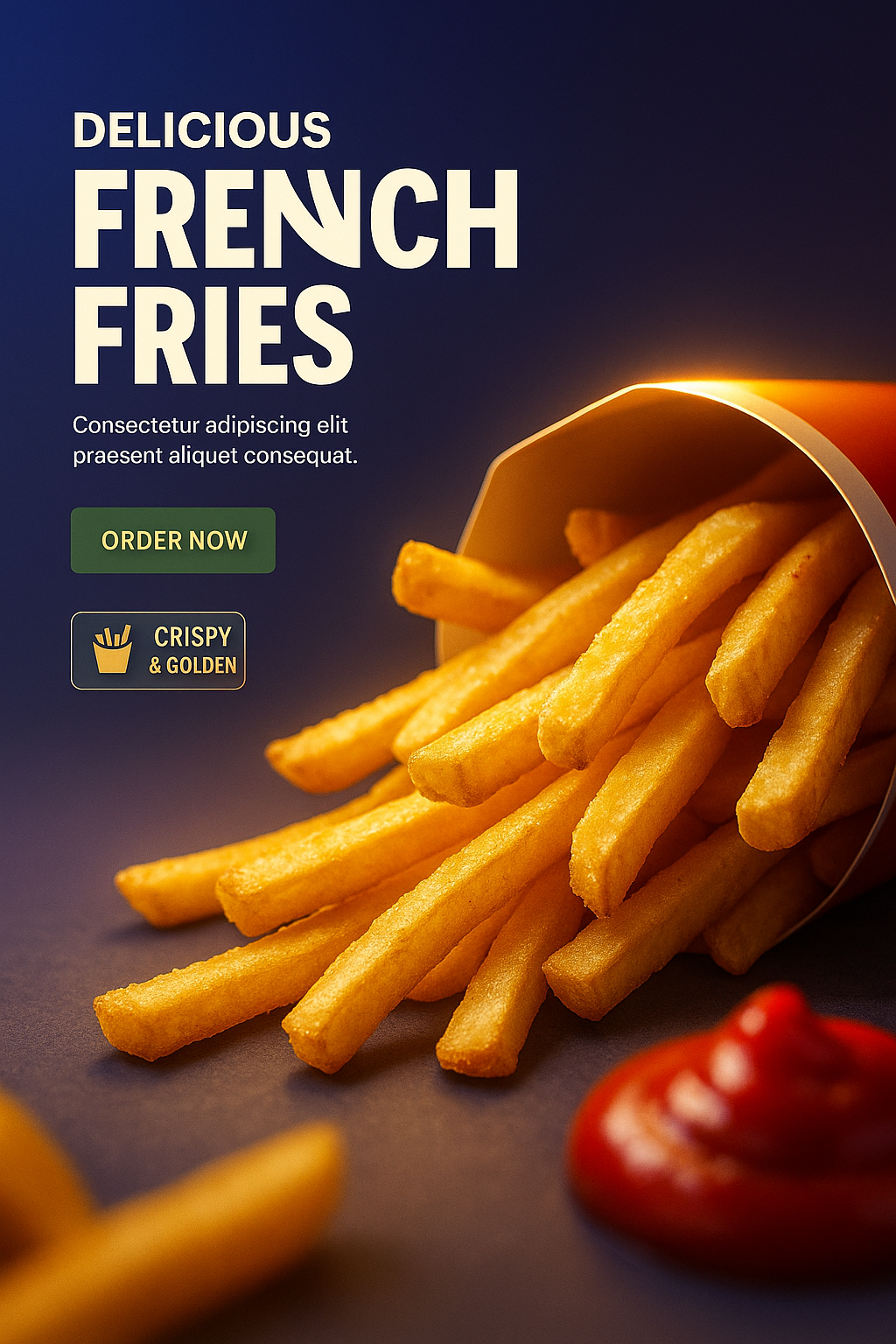 Delicious French Fries with Ketchup in Realistic Style