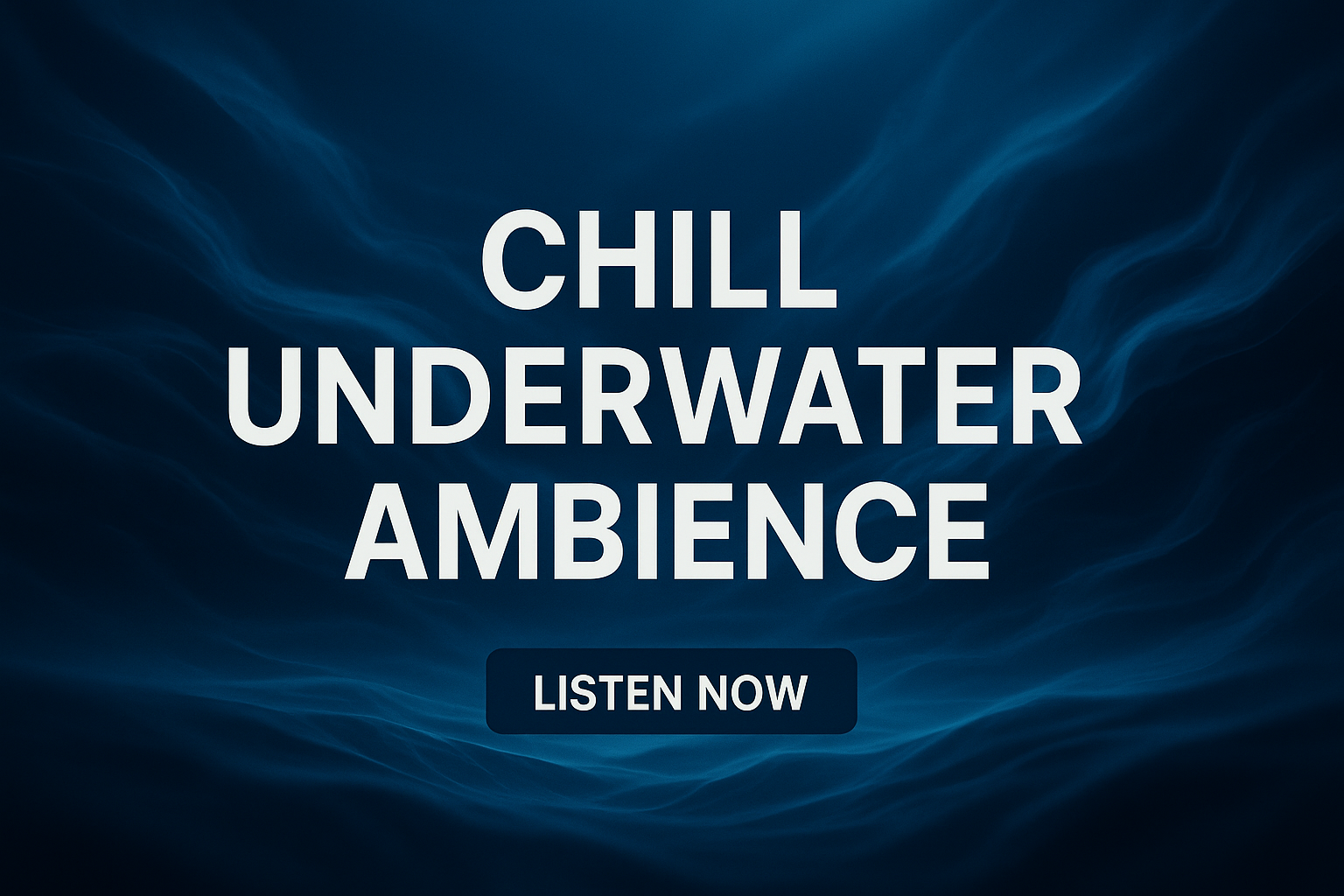 /Collection: /by davooda/Type: PNG/Vibrant promotional graphic featuring a calming underwater theme, designed to attract listeners to a chill ambience audio experience. Ideal for music streaming platforms.
