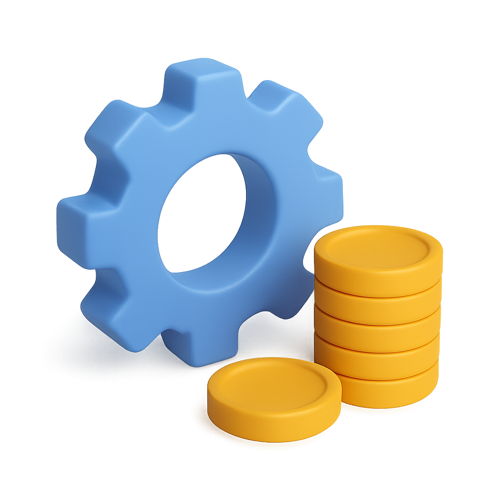 3D Icon of Gear and Stacked Coins with Isometric View
