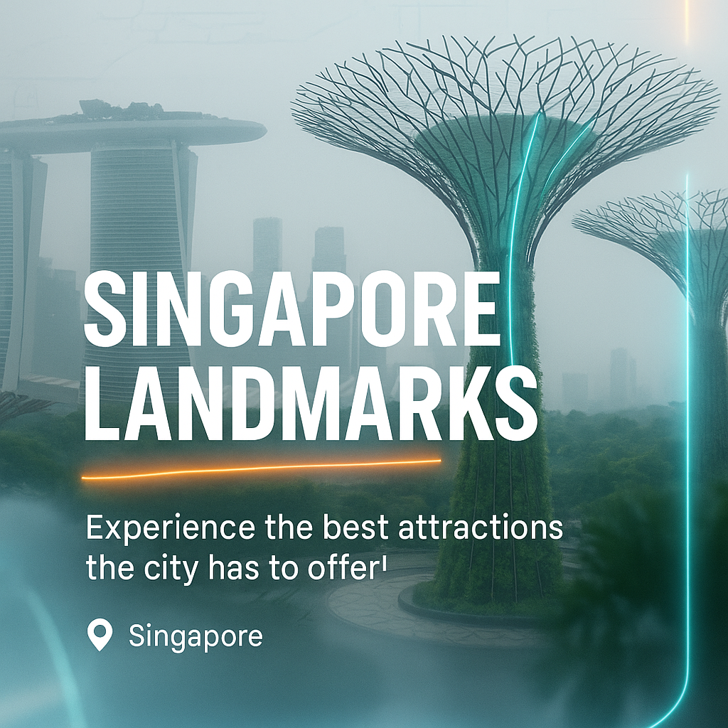 Engaging promotional image showcasing iconic Singapore landmarks with a modern design, ideal for tourism marketing and travel guides.