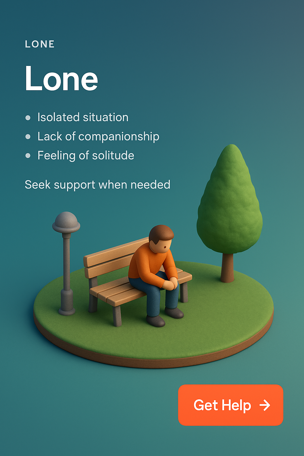 A detailed 3D scene depicting a small figure sitting on a bench, reflecting solitude, surrounded by a tree and a lamp post. The gradient background enhances the overall realism.