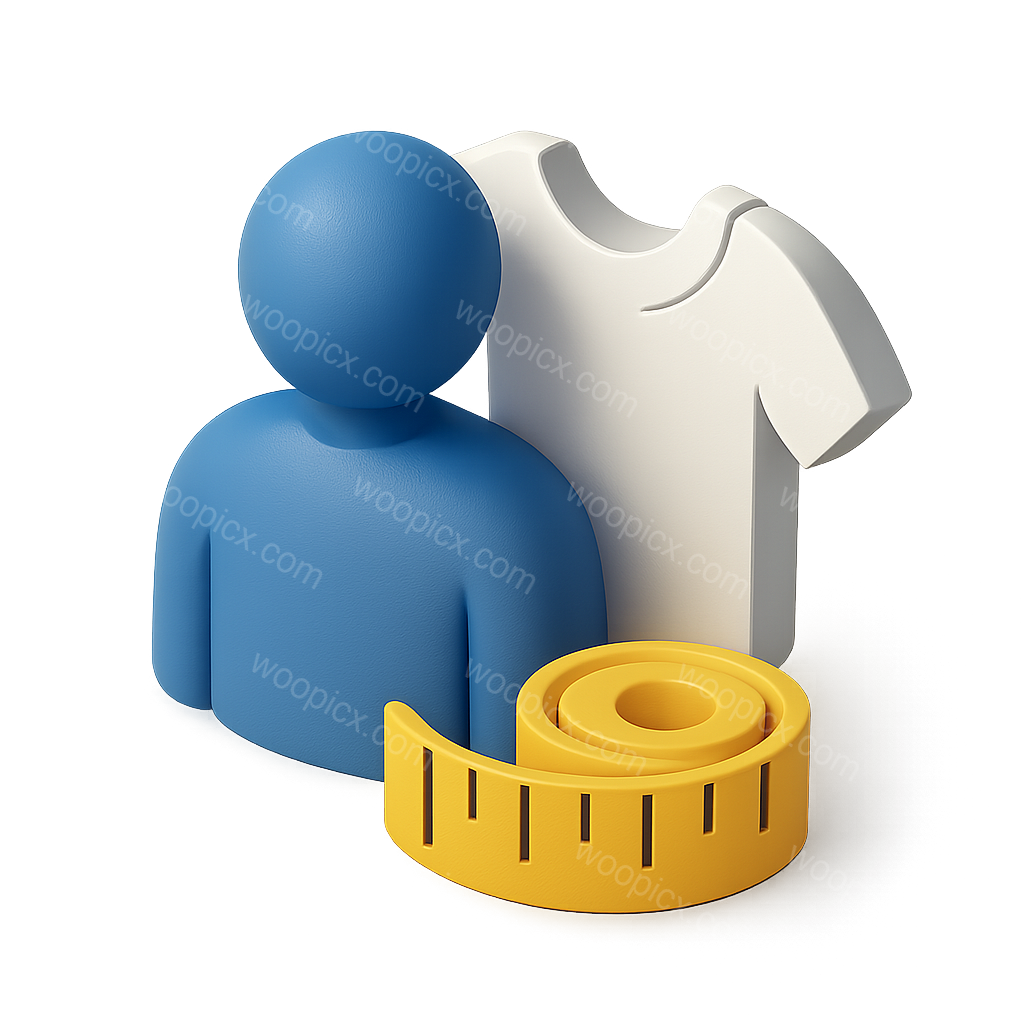 /Premium/Collection: /by davooda/Type: PNG/A 3D icon depicting a blue figure next to a white shirt and a measuring tape. The design emphasizes personalization and custom fitting, rendered with a volumetric isometric style.