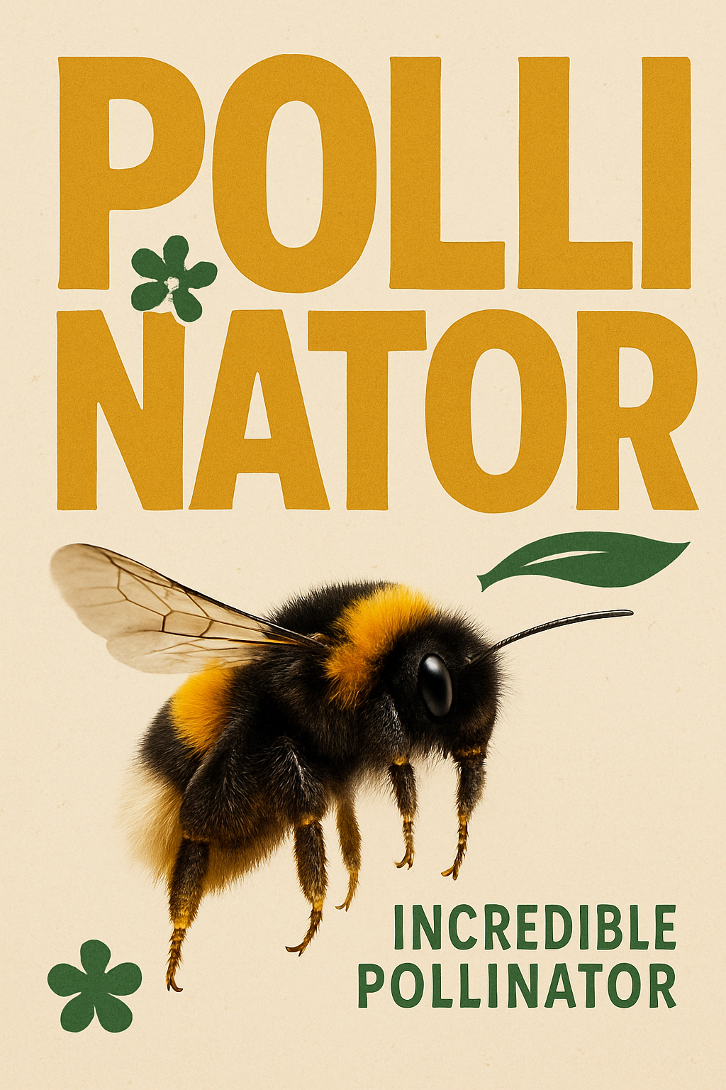 /Collection: /by davooda/Type: PNG/A visually appealing poster featuring a bumblebee, emphasizing its role as a pollinator. The design uses bold typography and earthy colors, making it suitable for educational purposes or environmental awareness campaigns.