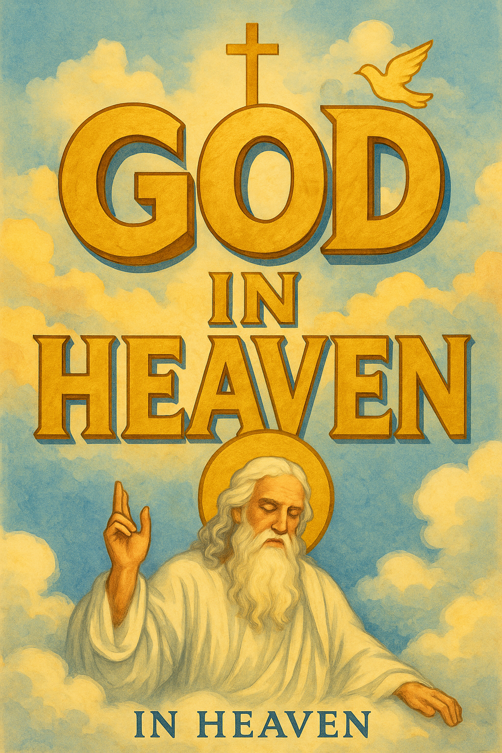 A religious-themed illustration featuring a divine figure representing God, surrounded by clouds and a dove, conveying a spiritual message. Suitable for religious contexts and inspirational content.