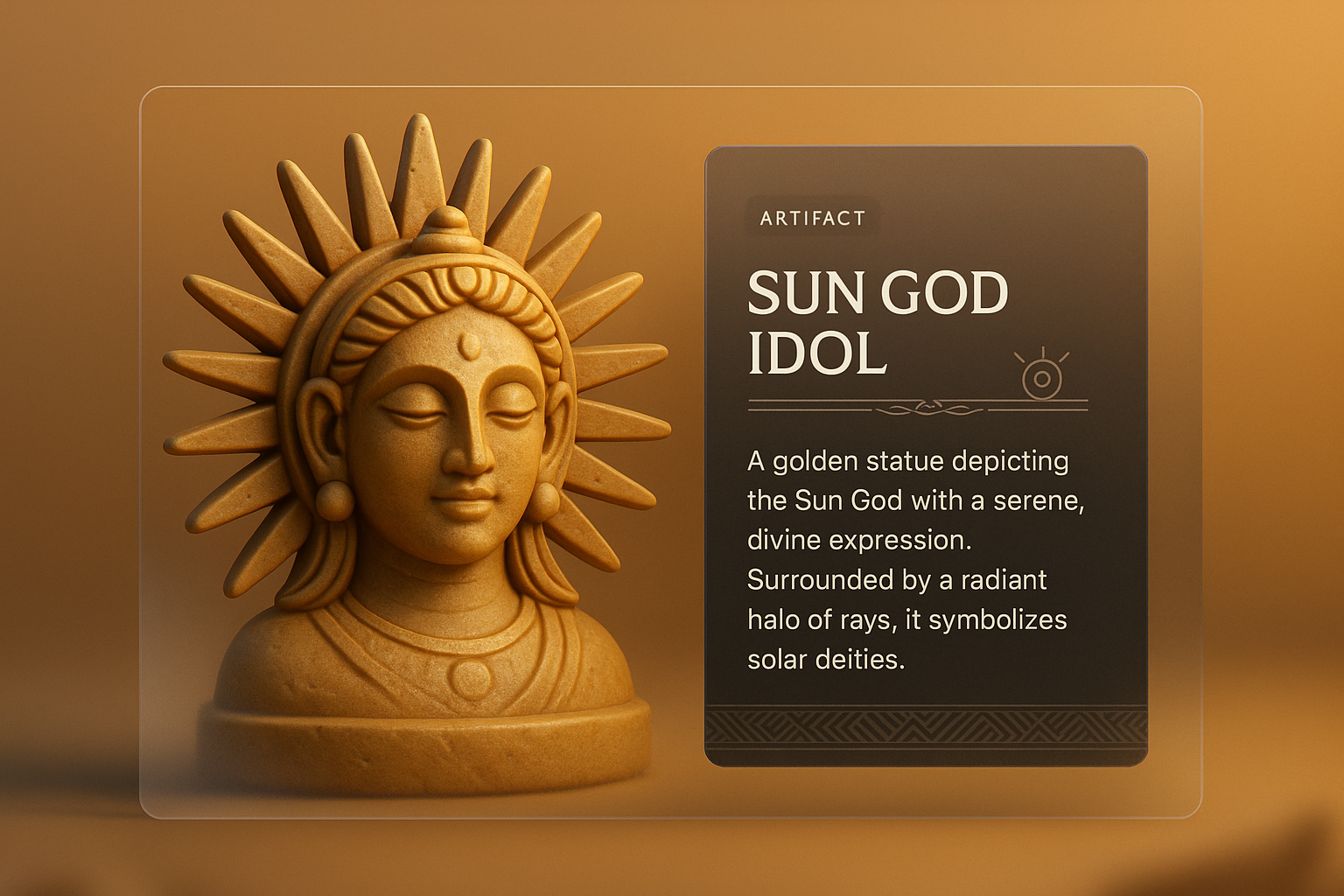 /Collection: /by davooda/Type: PNG/A beautifully crafted golden statue of the Sun God, showcasing a serene expression and radiant rays. The design integrates text and graphics seamlessly, enhancing its aesthetic appeal.