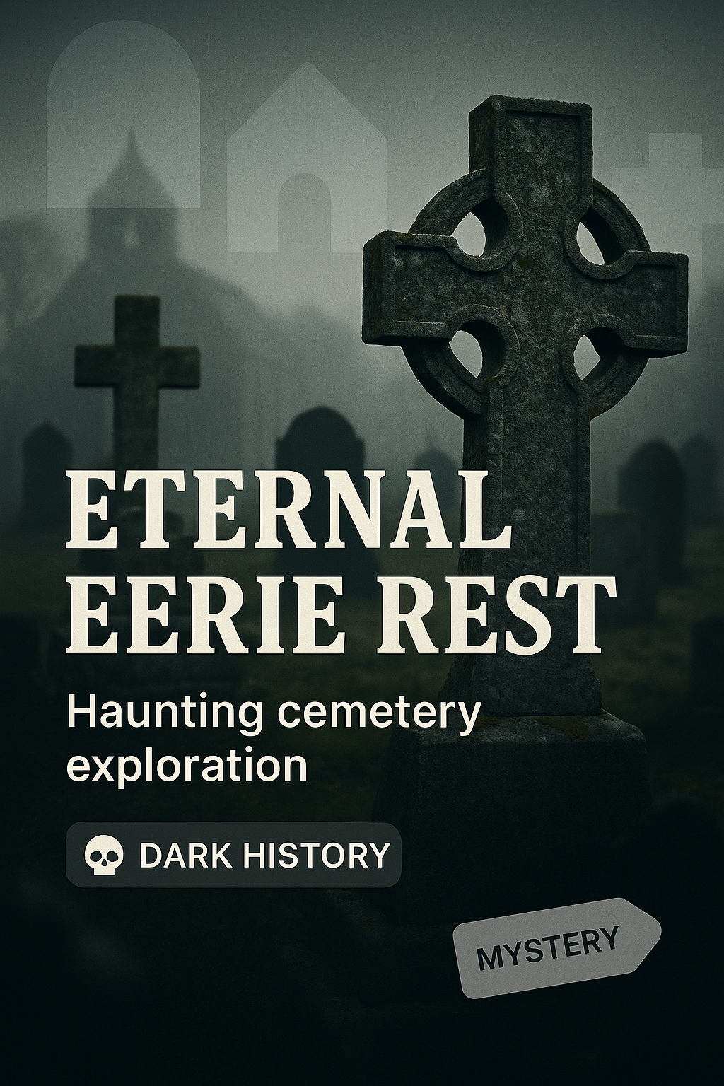 Mysterious Cemetery Exploration Graphic with Eerie Design Elements
