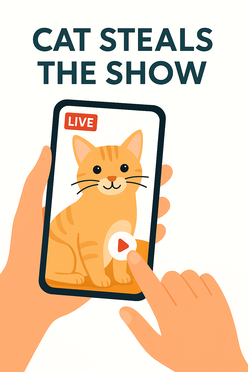 Playful Illustration of a Cat Streaming Live on a Smartphone