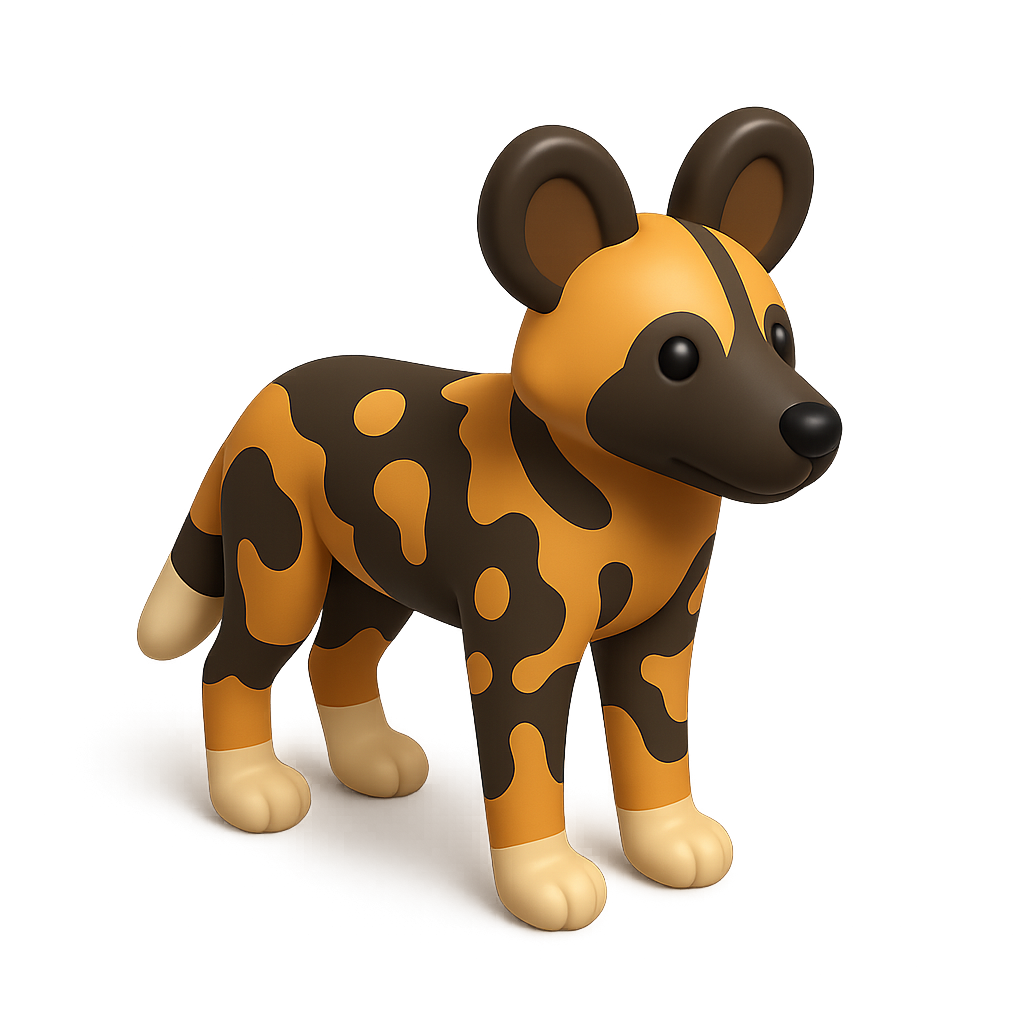 A colorful cartoon-style figurine of a wild dog featuring a unique pattern. Ideal for children's toys or decorative items.