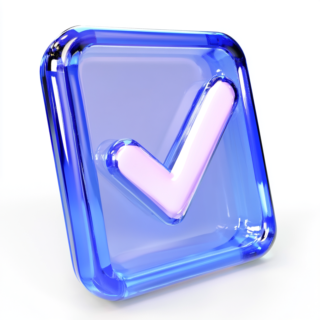 3D Glossy Checkmark Icon on Soft Gradient Background