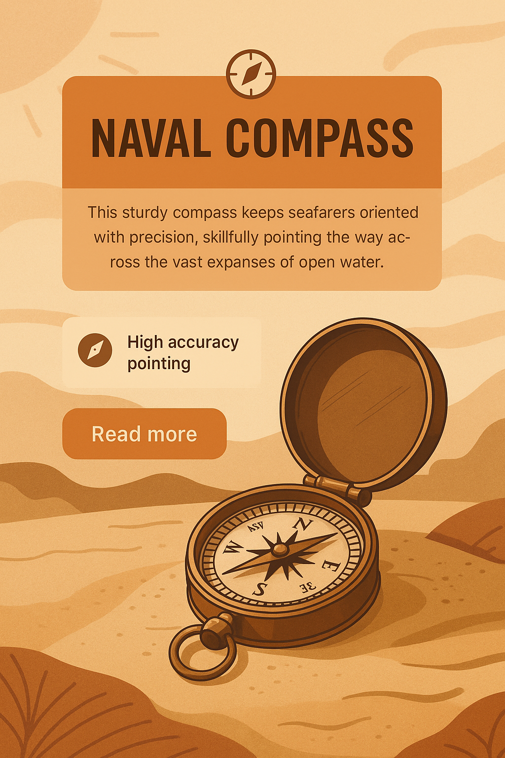/Collection: /by davooda/Type: PNG/An artistic depiction of a naval compass set against a warm, earthy background. The compass is prominently featured, accompanied by engaging text and a call-to-action button. The design embodies a boho aesthetic with smooth gradients and a clean layout.