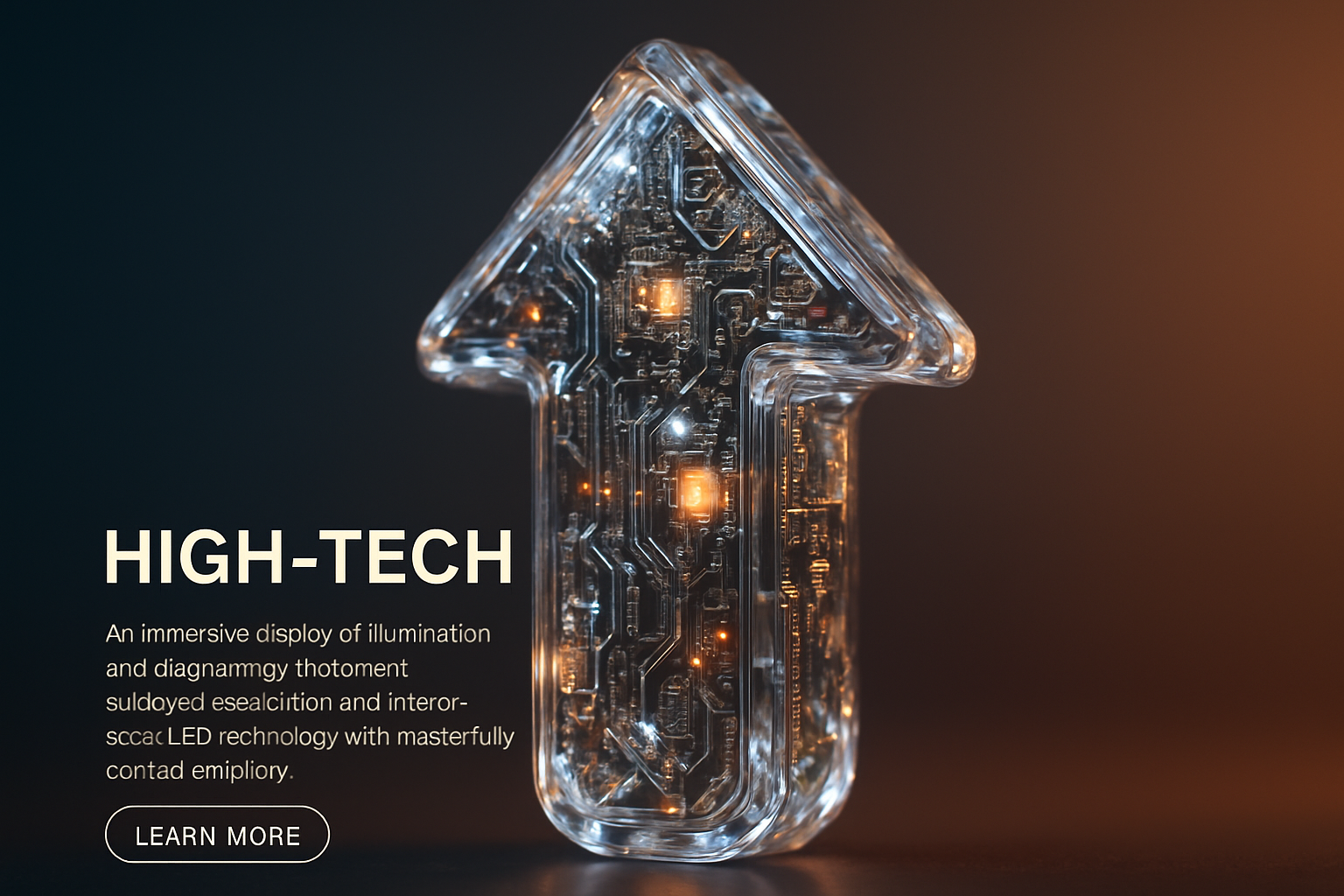 /Collection: /by davooda/Type: PNG/A hyperrealistic close-up of a glass arrow embedded with glowing micro-LEDs and intricate circuit boards. The sleek design reflects ambient light, showcasing high-tech aesthetics.