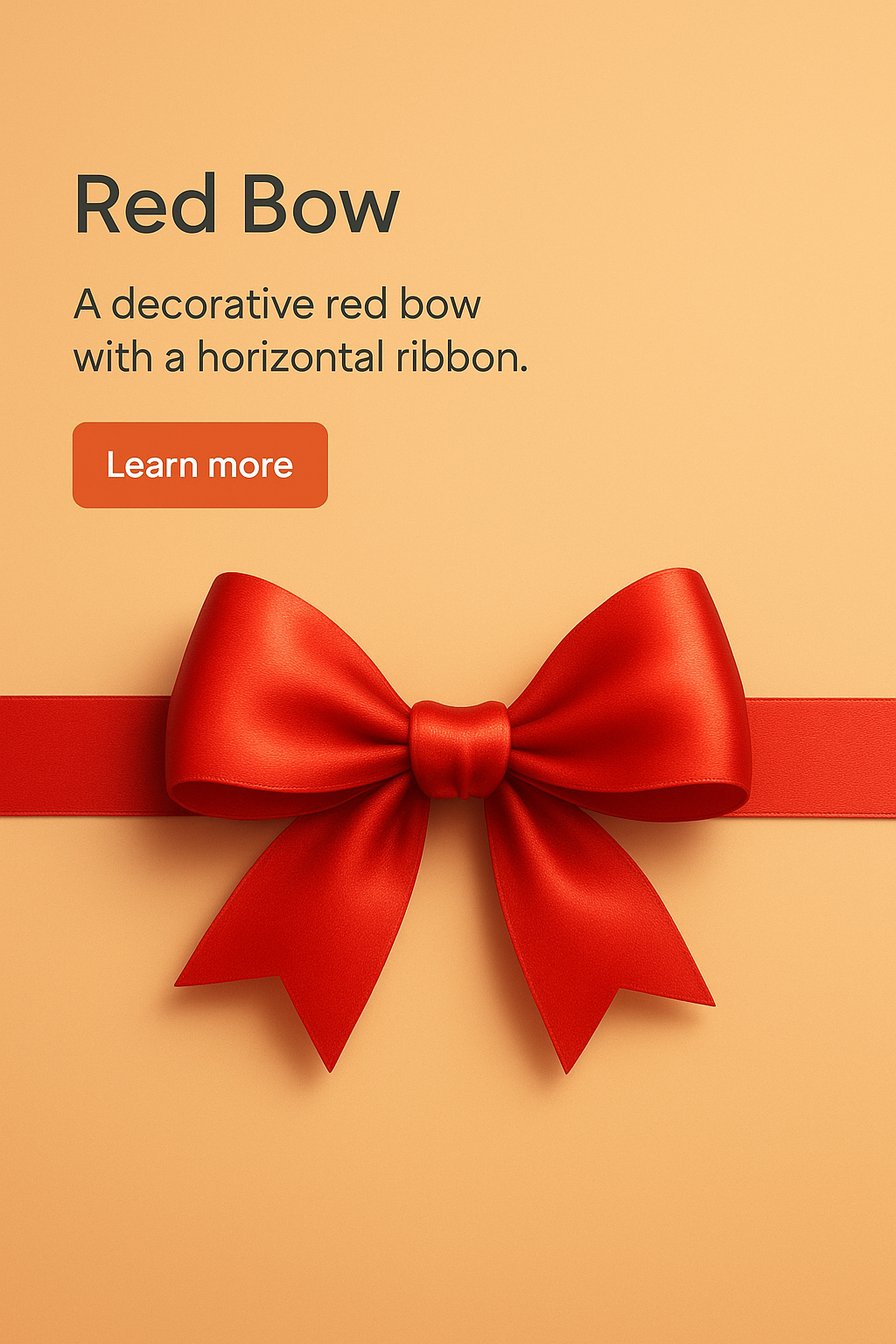 A beautiful 3D illustration of a red bow on a smooth gradient background, featuring a text block and action button for cohesive design.