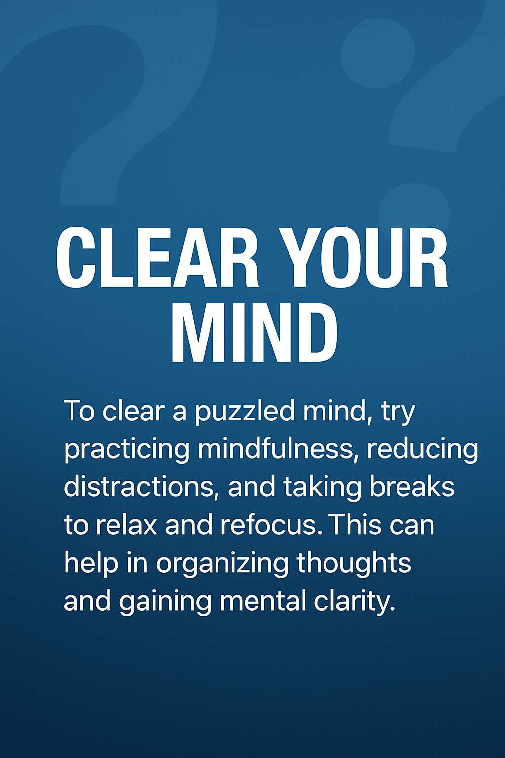 /Collection: /by Sergey Leonov/Type: PNG/Informative graphic promoting mindfulness techniques aimed at enhancing mental clarity. The design features a calming blue background with bold typography, suitable for wellness campaigns or mental health awareness.