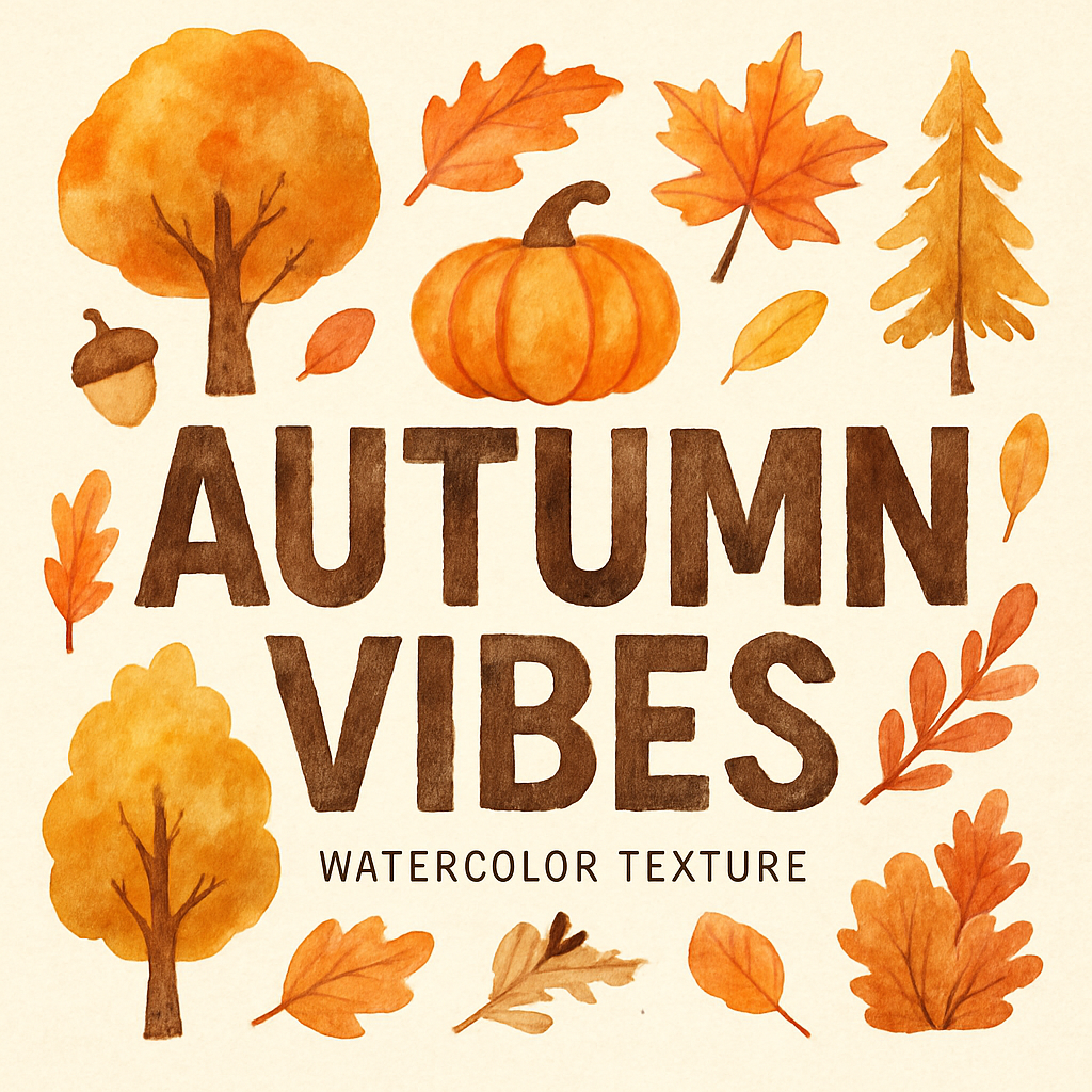 Autumn-Themed Watercolor Illustration with Vibrant Elements