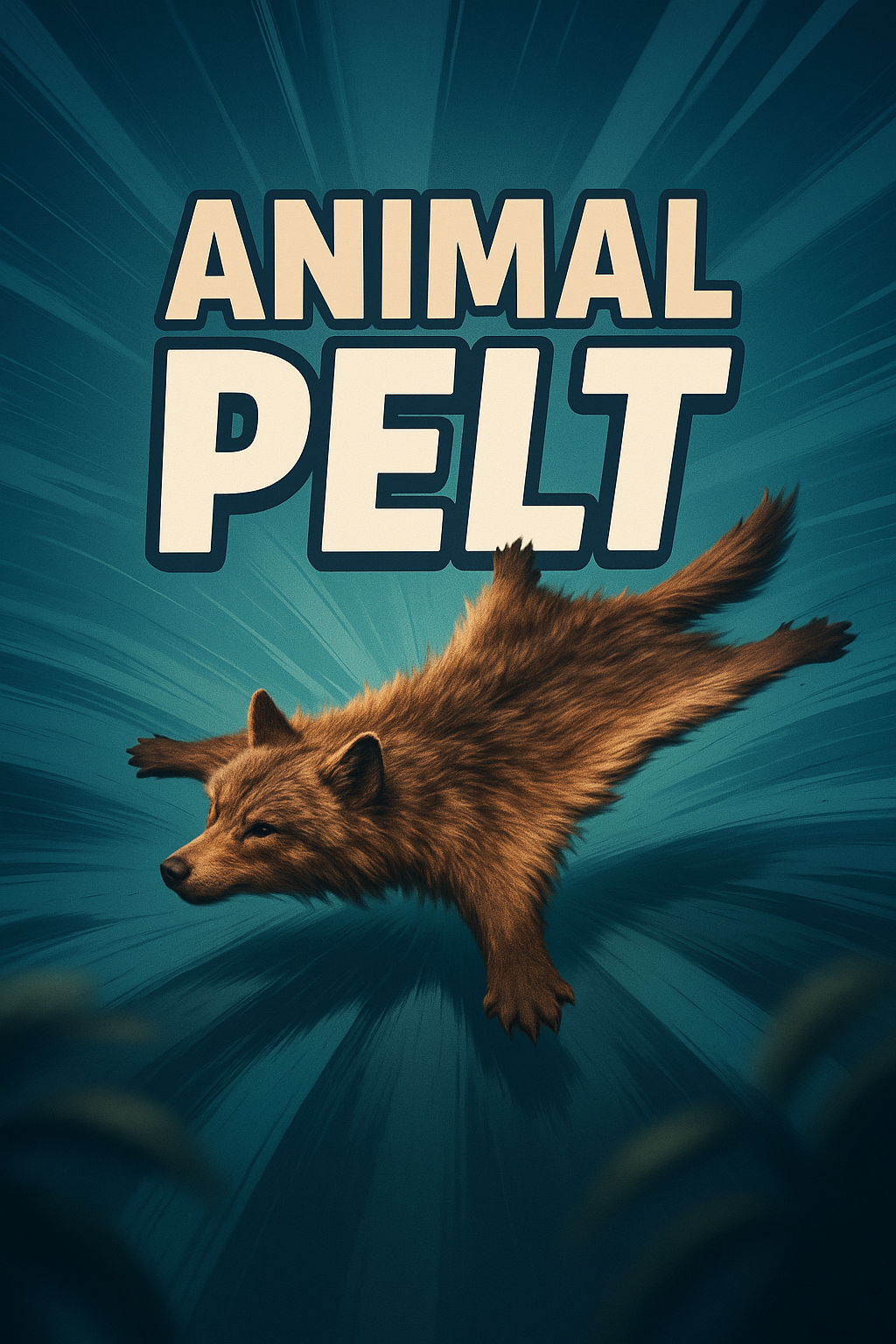 /Collection: /by davooda/Type: PNG/This vibrant illustration showcases an animal pelt in mid-motion, highlighted by dynamic lines radiating from the center. The bold title, 'ANIMAL PELT', is prominently displayed, enhancing the energetic feel of the image.