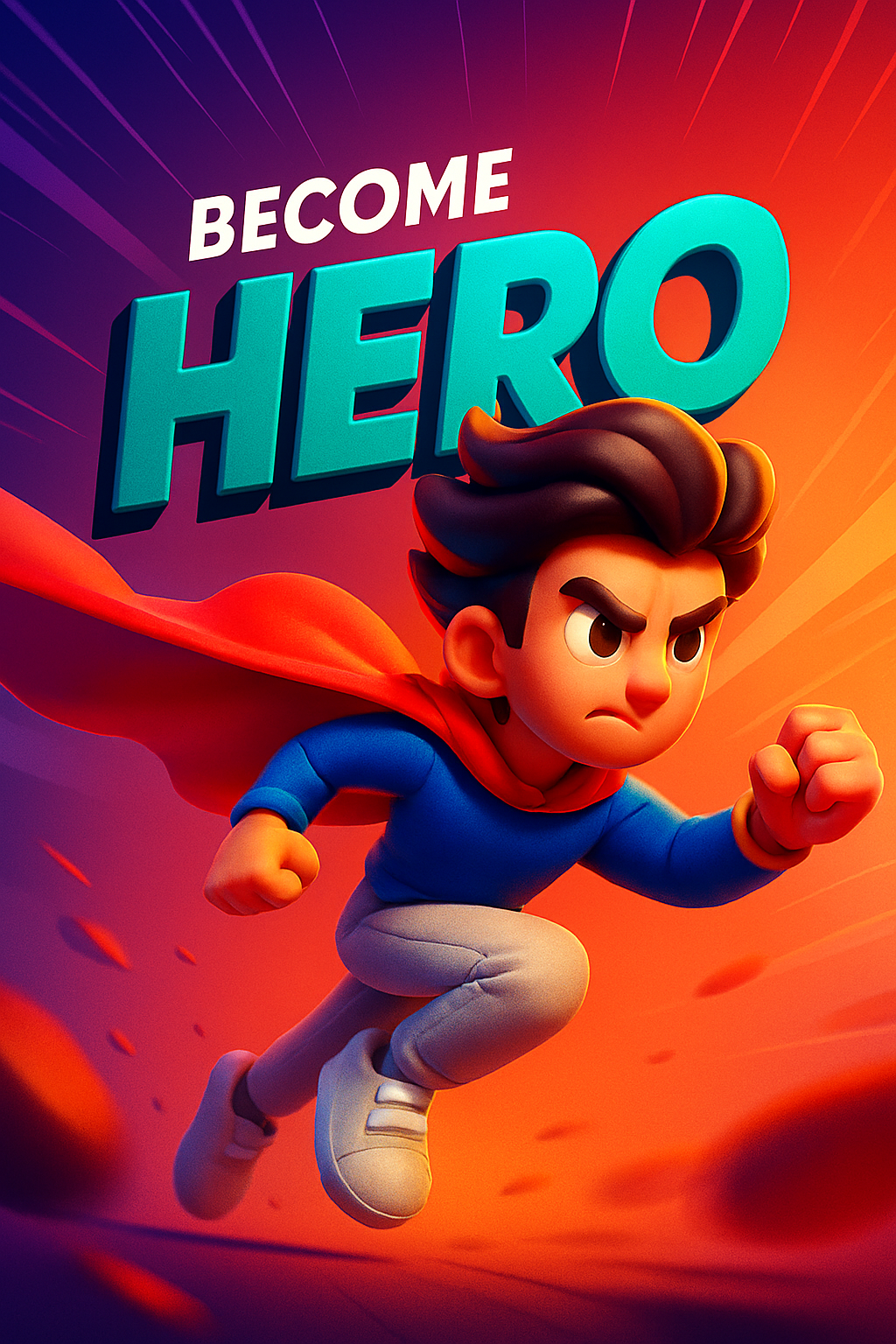 A vibrant 3D illustration of a young hero in motion, embodying determination and energy. The background features a smooth gradient transitioning to a solid color, enhancing the dramatic effect.