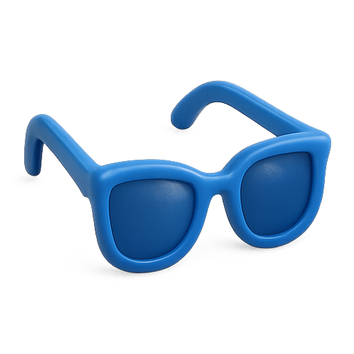 A pair of trendy blue sunglasses featuring a smooth, soft finish, ideal for fashion accessories or playful designs. Suitable for use in marketing materials or product showcases.