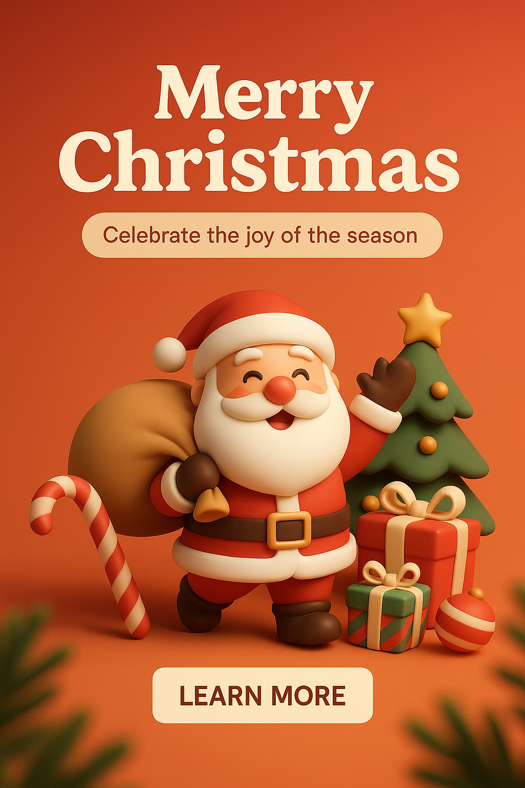 Dynamic 3D Christmas Scene with Santa Hat and Text
