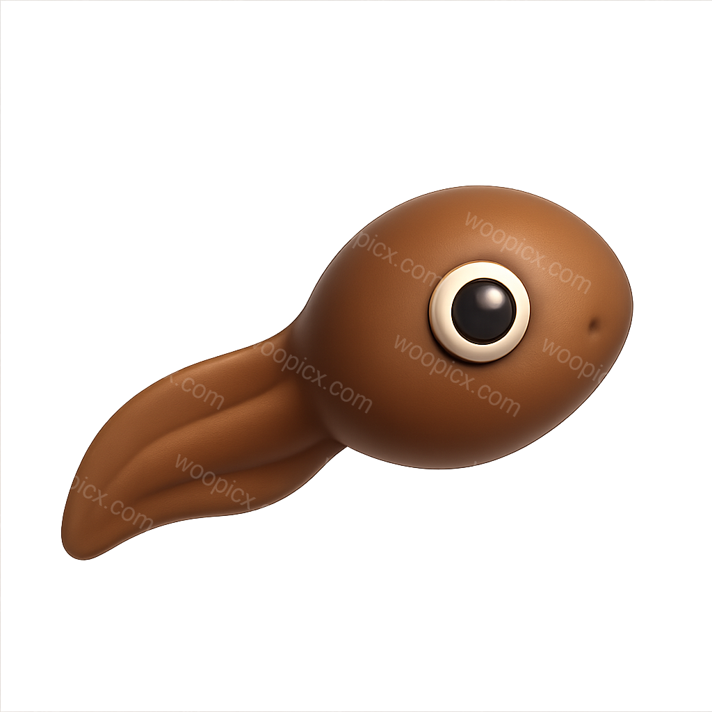 A stylized 3D tadpole icon featuring a smooth, rounded body and a prominent tail. The design showcases a glossy finish and a three-quarter view, enhancing its volumetric appearance.