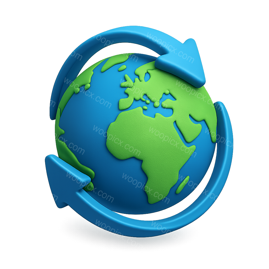 3D Globe Icon with Circular Arrows for Global Concepts
